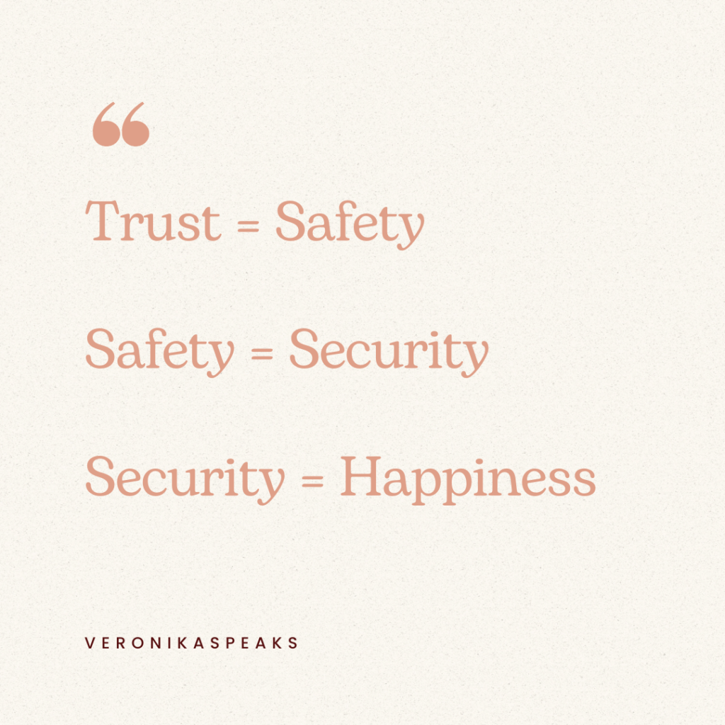 + Trust equals safety, safety equals security, and security equals happiness.